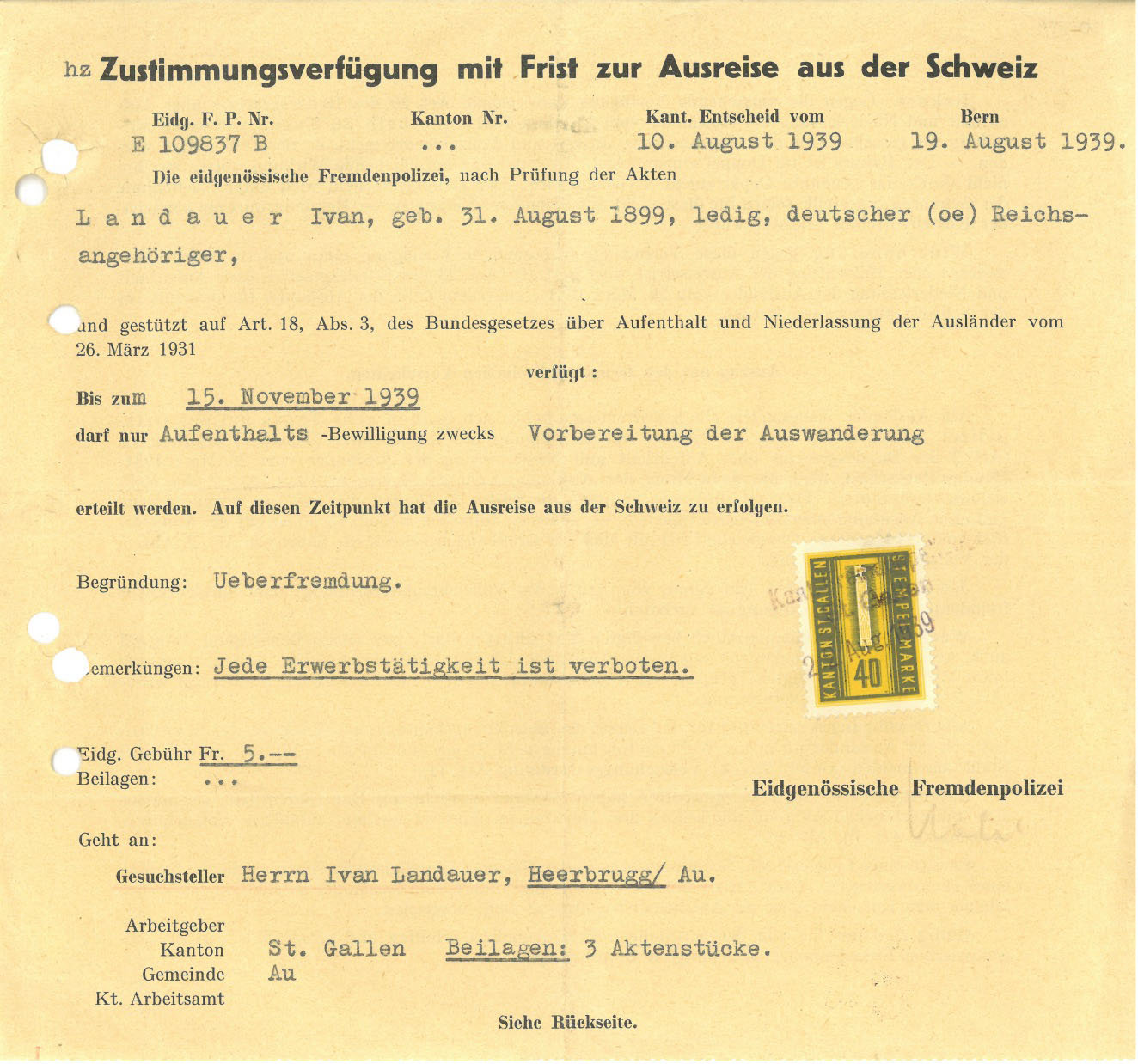 „Begründung: Überfremdung“. Ivan Landauer und die Schweizer Fremdenpolizei