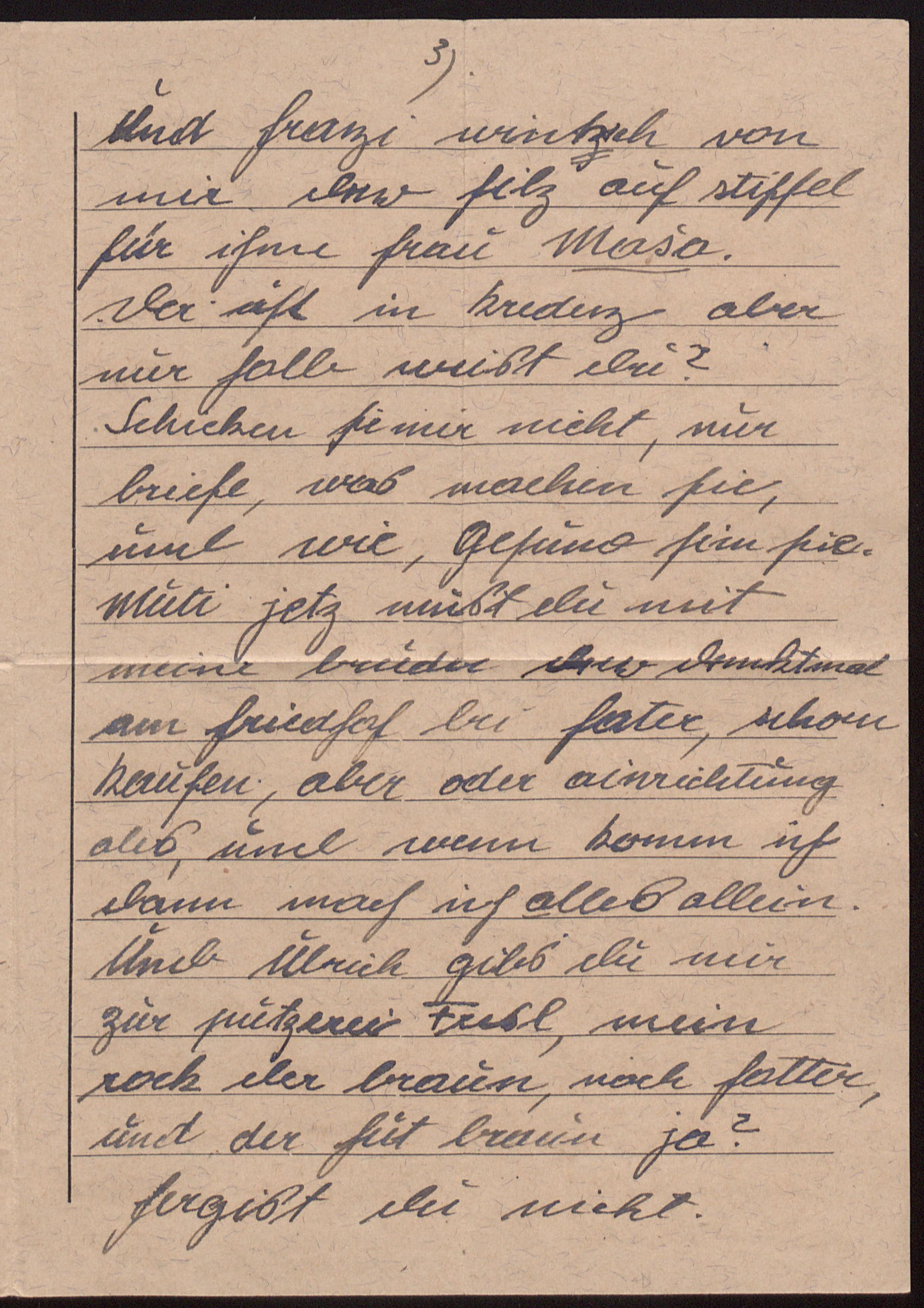 Liebe Mutti, gehst du mir zur meine schneider, auf Linzerstrasse, dann hab ich der Wintermantl zu machen bei schneider Mikolas, wenn fertig ist, nehm den mantl gleich zu hause und einen sacko, rock, und zahlst du alles, schon komm ich dan machma rechnung. […]