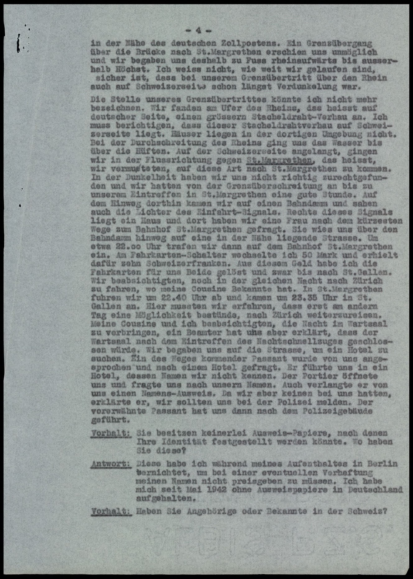Ein Jahr später, im März 1943, wird sie der Polizei in St. Gallen ihre Geschichte schildern, auch ihren Besuch bei der Gestapo.