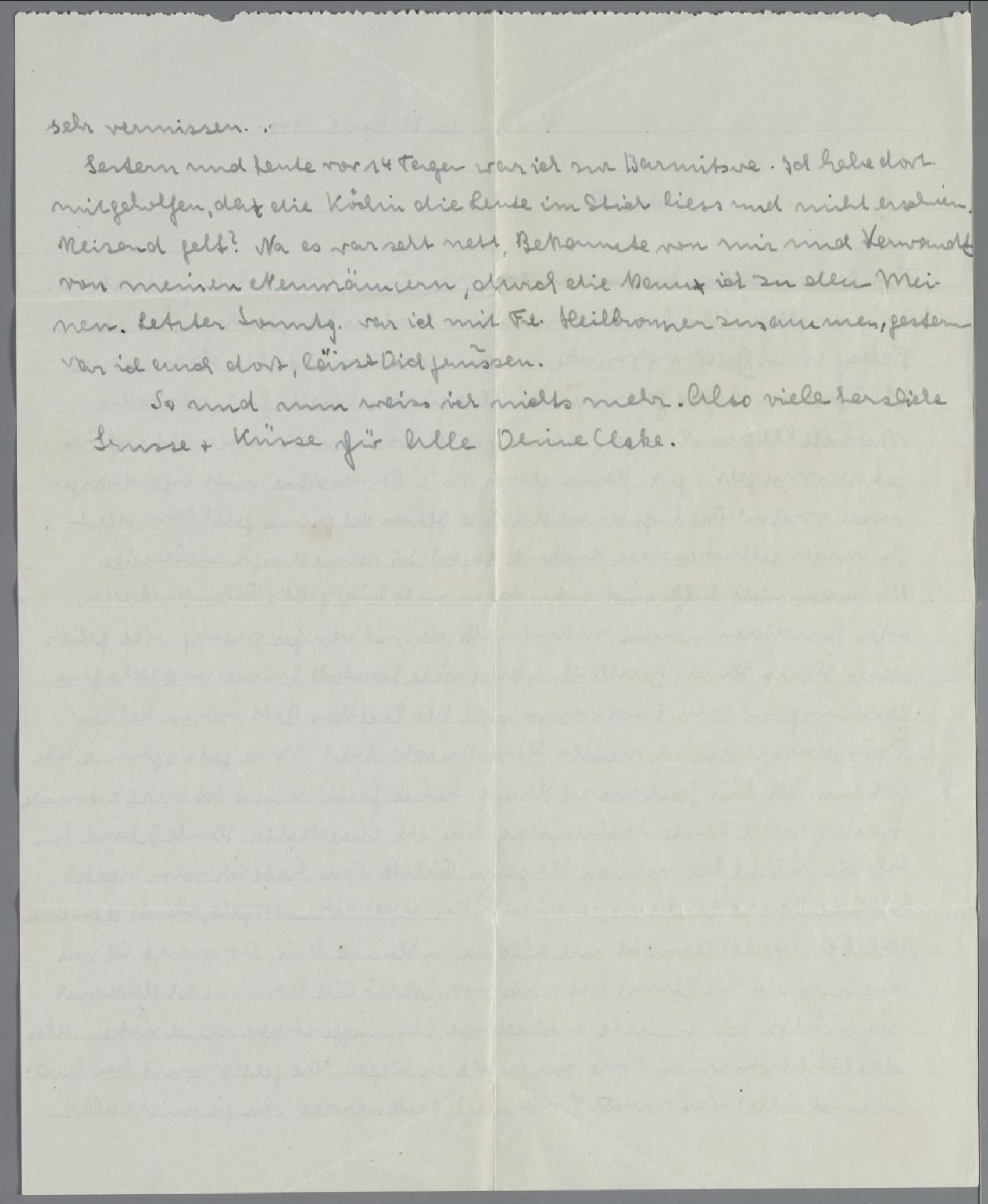 „Lisel hat Euch sicher bereits per Telephon gesagt, dass ich aufgerufen bin, nun nach Deutschland zum Arbeitsdienst zu gehen. […] Am 15. Juli sollen wir hier fort, aber bis dahin ist’s noch soviel Zeit. Mir geht’s gut, bitte macht Euch keinerlei Sorgen, wenn irgend möglich, bleibe ich immer mit Lisel zusammen. Also bitte bringt’s Thepi bei!“