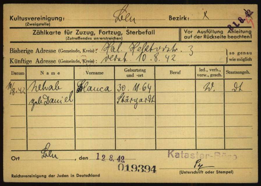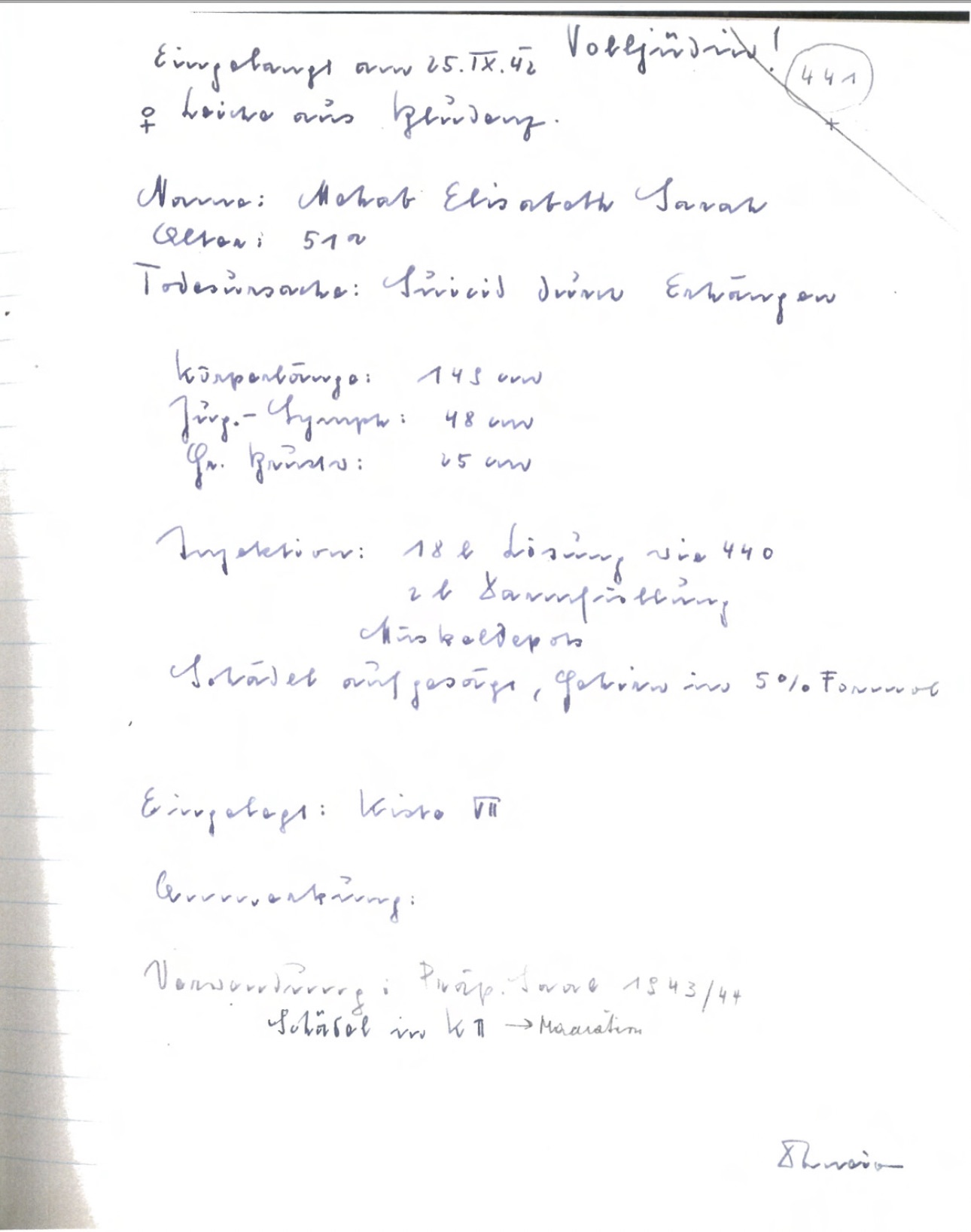 [3] Leichenbuch 1929-1950 der Anatomie der Universität Innsbruck, Eintrag 440 und 441. Erst 2020 führt eine Recherche von Niko Hofinger über die Geschichte der Innsbrucker Anatomie während des Krieges zu den Namen von Martha und Elisabeth Nehab und dem Datum ihres Todes.